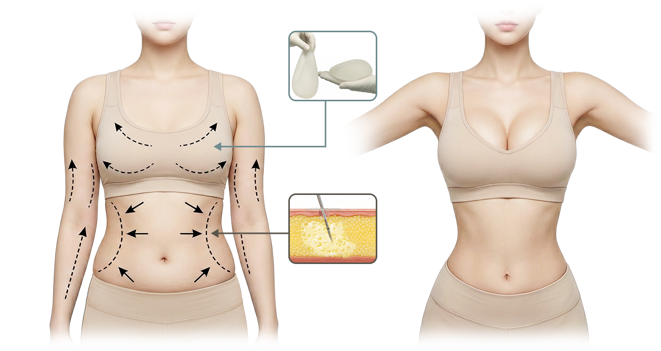 가슴 확대와 복부 지방흡입을 동시에,