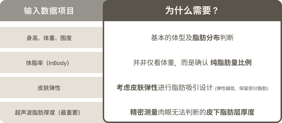 并在顾客亲眼看到的情况下,展示预计的脂肪吸取量。