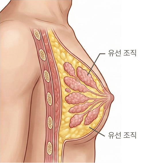 지방조직과 '유선조직'이 함께 과도하게 발달한 상태입니다.