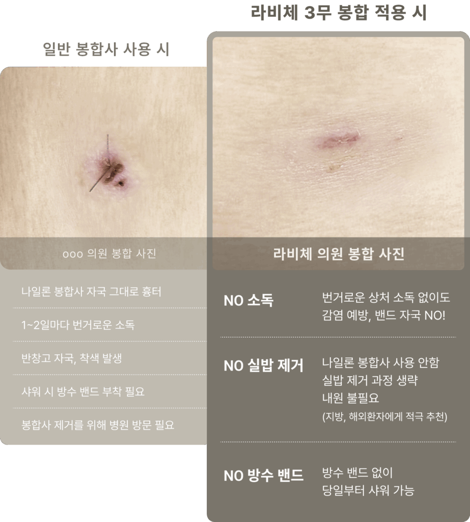 일반 봉합과 차별화된 라비체만의 특별한 봉합 시스템입니다.