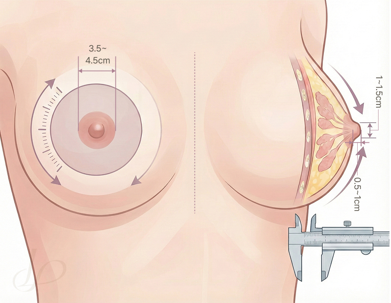 가슴 크기와 조화로운 유두·유륜 비율, 좌우 대칭